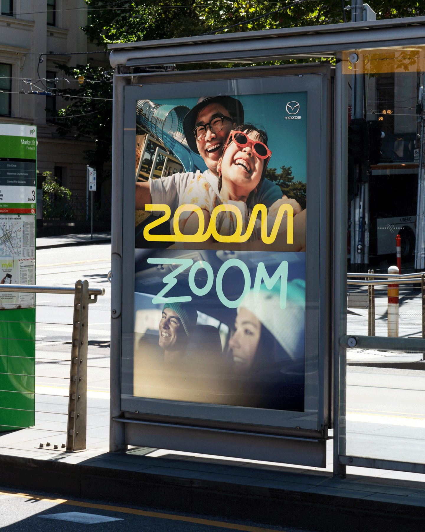 Zoom-Zoom needs little explanation — over-explaining would only dilute it. The launch expressed the joy of movement in the boldest, most immediate way possible, spanning film, posters and immersive installations. To support this, 15+ custom illustrated Zoom words were developed, giving the new Mazda electric range a playful, expressive visual language that celebrates movement as a universal, personal experience — your Zoom, my Zoom, united by the simple joy of moving.